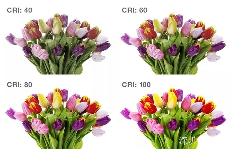 顯色指數(shù)越高,物體的真實還原度越好;顯色指數(shù)越低,物體的真實還原度越差。