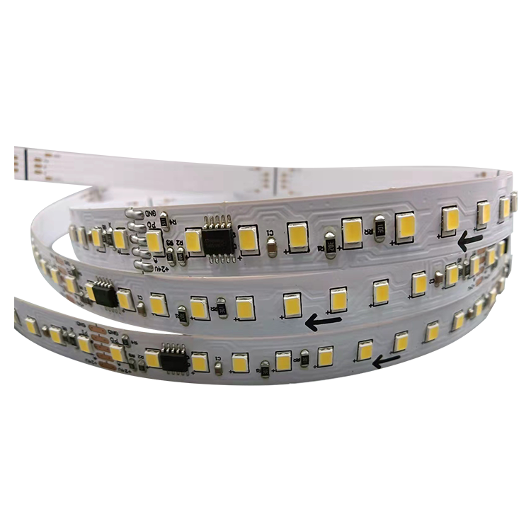 EC-T2835DMX-30K120-24-0000 SMD裸燈帶使用120顆2835 LED,外置DMX512 IC,多種光色可選,不同場合場景,可選擇不同燈光,通過控制器實(shí)現(xiàn)漸變、追逐等燈光效果。