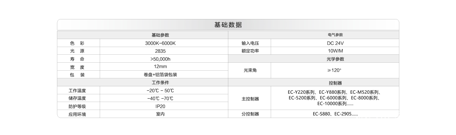 - 名稱:EC-T2835DMX-30K120-24-0000 SMD裸燈帶